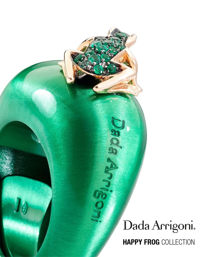 Colección Happy Frog es una propuesta única que combina la frescura del diseño italiano con materiales exquisitos como oro, diamantes. Cada pieza destaca por su composición audaz: las ranas, protagonistas absolutas, reposan sobre bases de plata y oro, evocando piedras naturales listas para saltar, en una interpretación elegante y divertida.