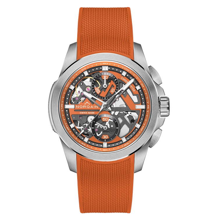 NORQAIN siempre sorprende a los aficionados de la relojería con la elección de los colores presentes en innovadores guardatiempos. En esta oportunidad, hace lo propio con el modelo Independence Skeleton Choro 42mm Orange. Sí, la marca viste a su nuevo reloj de color naranja.