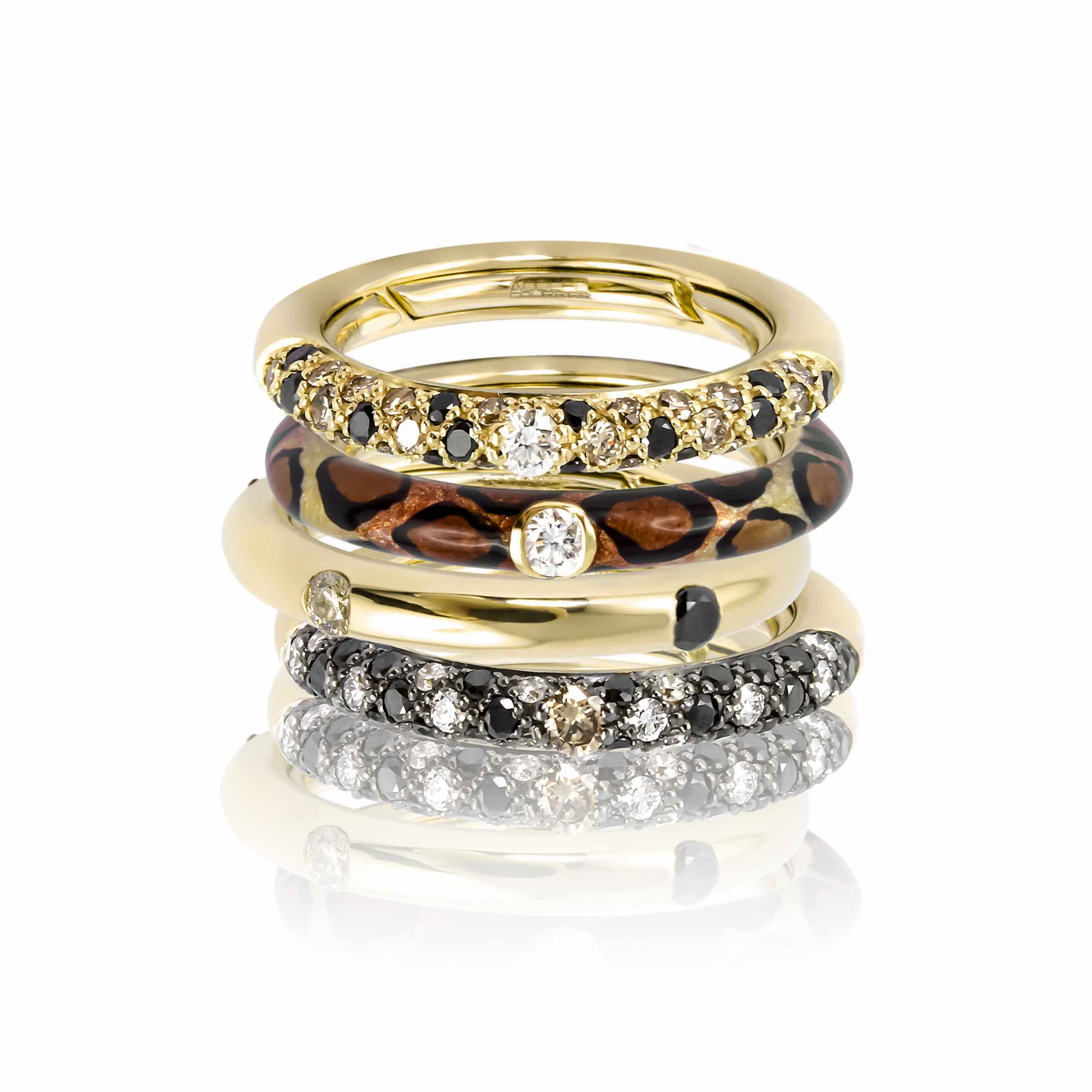Set de anillos Adolfo Courrier: De espíritu salvaje, el animal print de Adolfo Courrier se encuentra presente en estos anillos que apilados, se ven todavía mejor. Oro 18K, diamantes y gemas los protagonizan. Para una mamá que sigue tendencias.