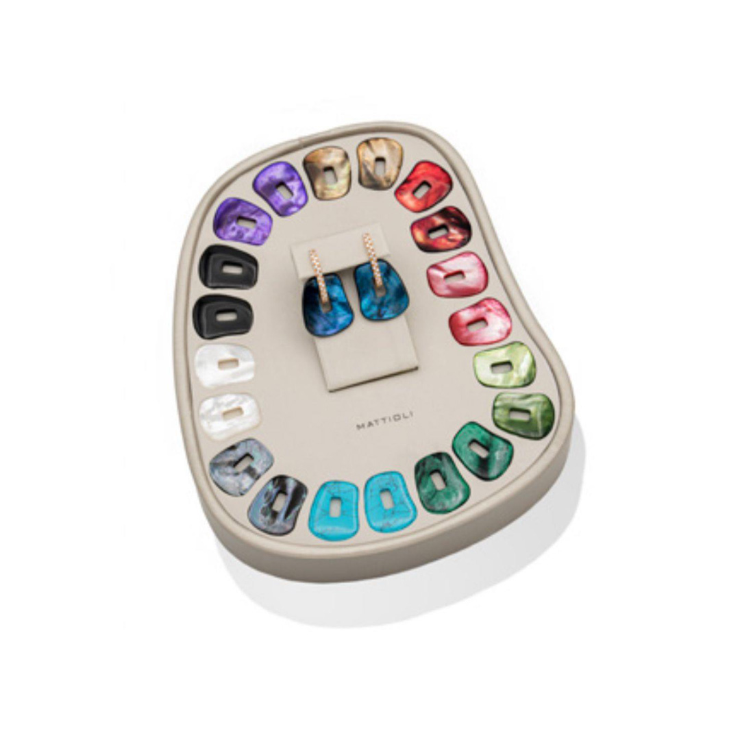 Set de pendientes Mattioli: Diversas opciones de pendientes, con un abanico de colores vibrantes. Este set de zarcillos creado en oro rosado de 18K con diamantes le permitirá a mamá tener distintos looks en uno.