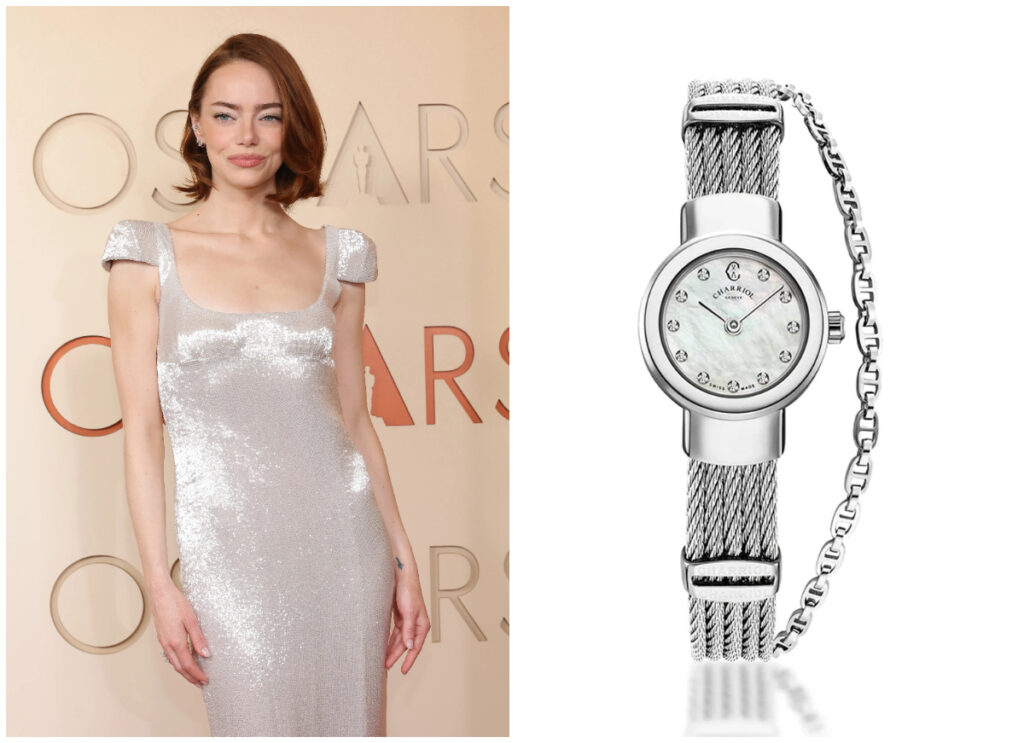 Emma Stone y Charriol: El minimalismo protagoniza este look firmado por Chanel, al cual incorporamos este delicado reloj de Charriol. El modelo de la emblemática colección ST Tropez de caja 20 mm contiene una luminosa esfera de madreperla.
