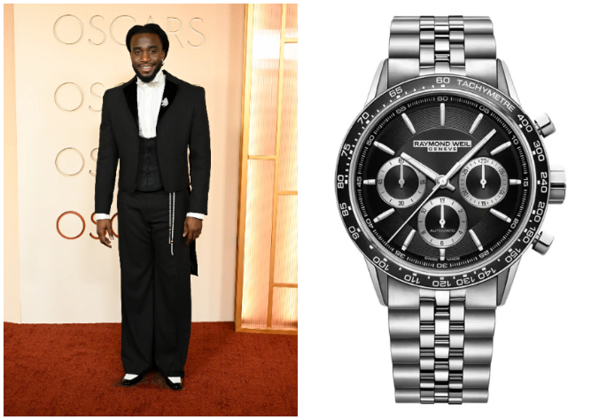 Shaboozey y Raymond Weil: Al look de Campillo incorporamos un modelo que hace el match perfecto: el Freelancer Cronógrafo Automático, con caja de 43,5 mm.