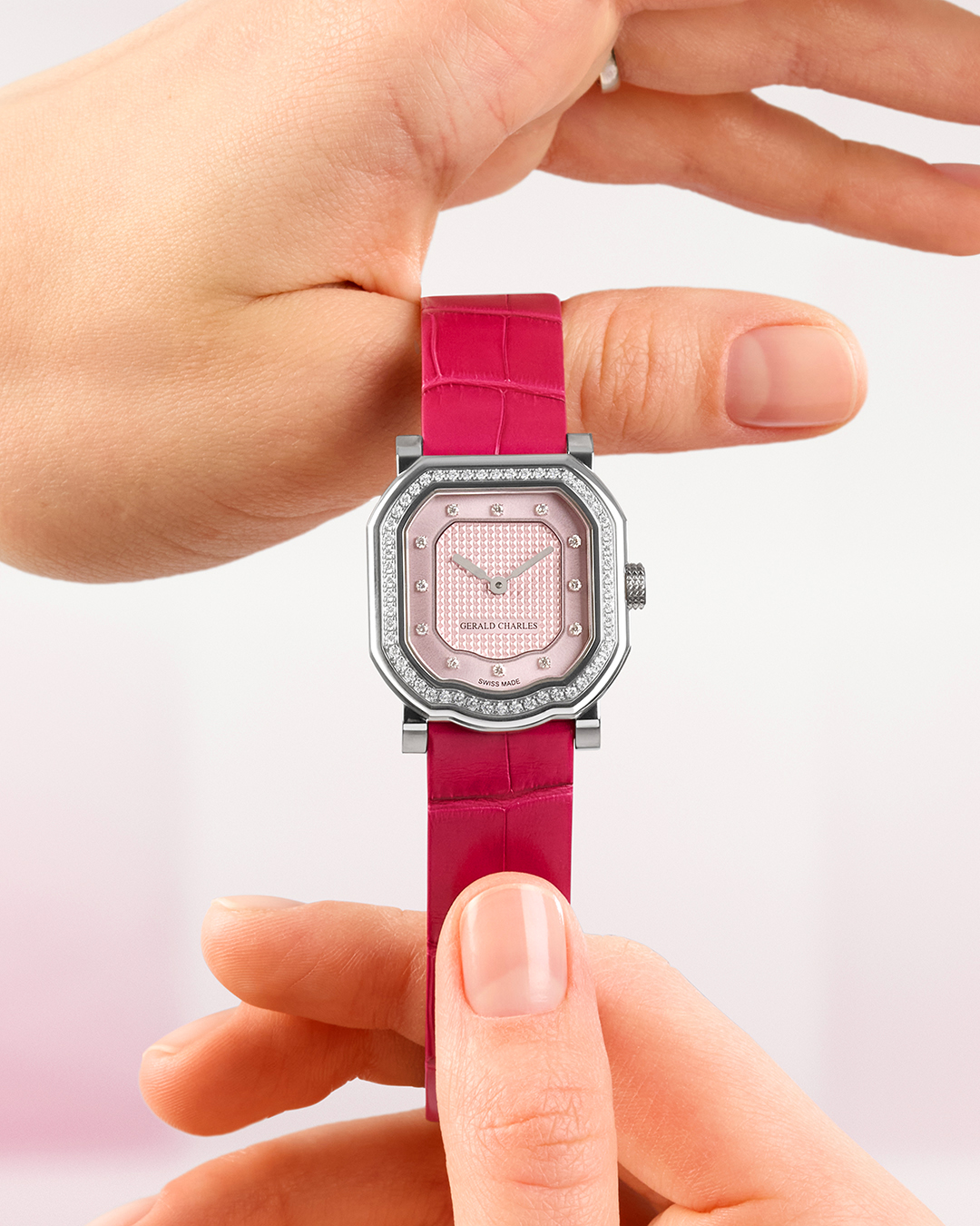 En lo que respecta a Gerald Charles, en feria la marca relojera ha llamado la atención por los distintos modelos que forman parte de la línea Mini Maestro. Cada reloj, de acuerdo con información suministrada por la marca, ha sido especialmente diseñado para el ritmo de vida real. Son ligeros, y versátiles, divertidos al igual que elegantes. Se presentan en diversos colores en cuanto a sus correas, y cuentan con diamantes en el biel.