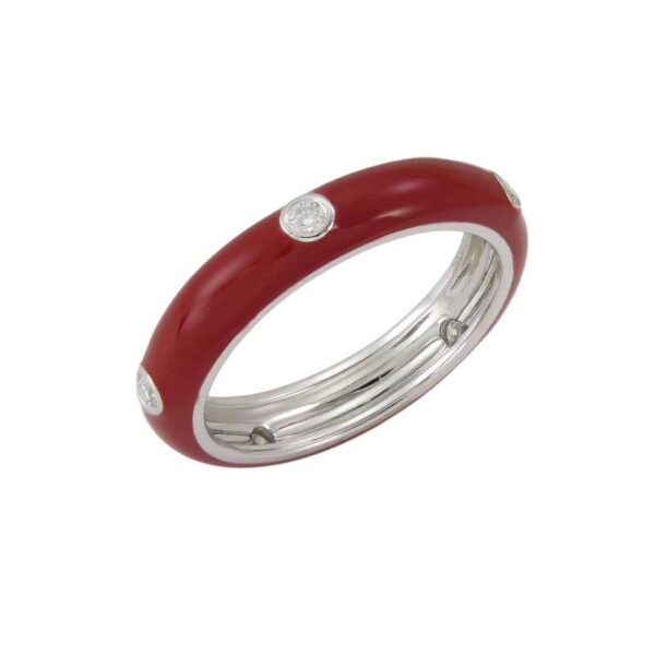 Anillo oro blanco 18K peso 3.2g con diamantes con un peso total de 0,13Ct calidad VS-H-I y esmalte talla 5.5
