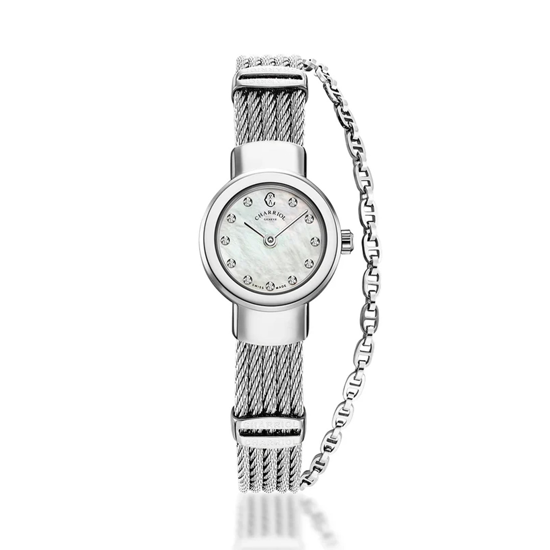 Charriol, reloj dama, 20 mm de caja, quarzo, esfera madre perla, acero