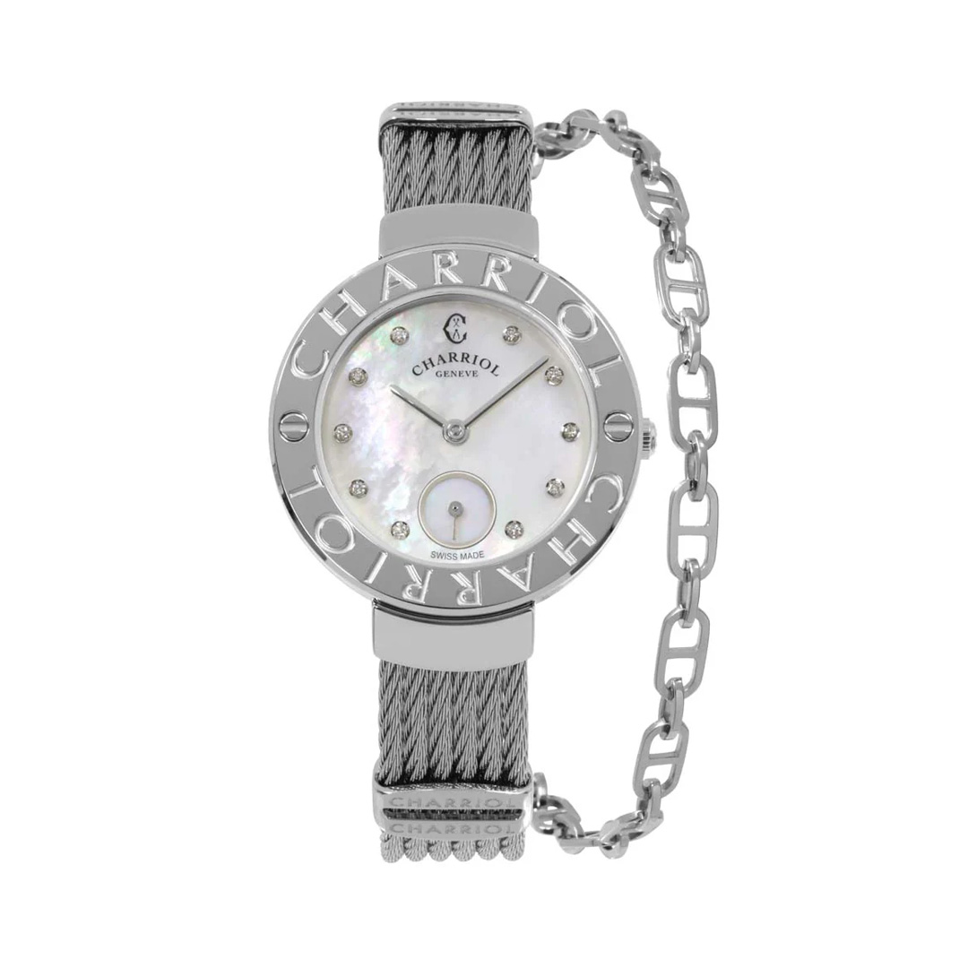 Charriol, reloj dama, 34 mm de caja, quarzo, esfera madre perla, acero