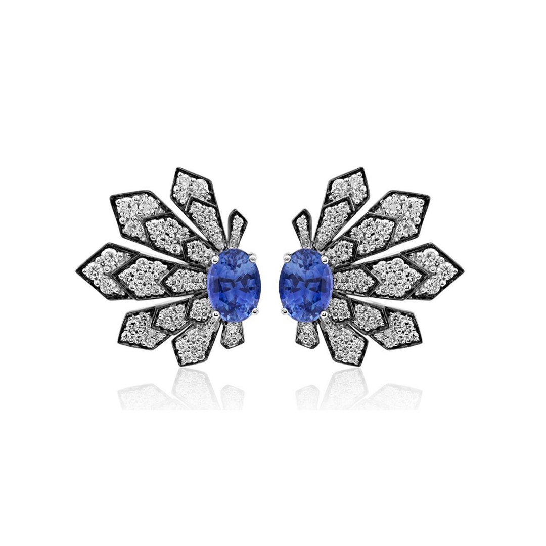 Zarcillo oro blanco 18K peso 8.60g con diamantes con un peso total de 0,96Ct y con zafiros con un peso total de 2,46Ct.