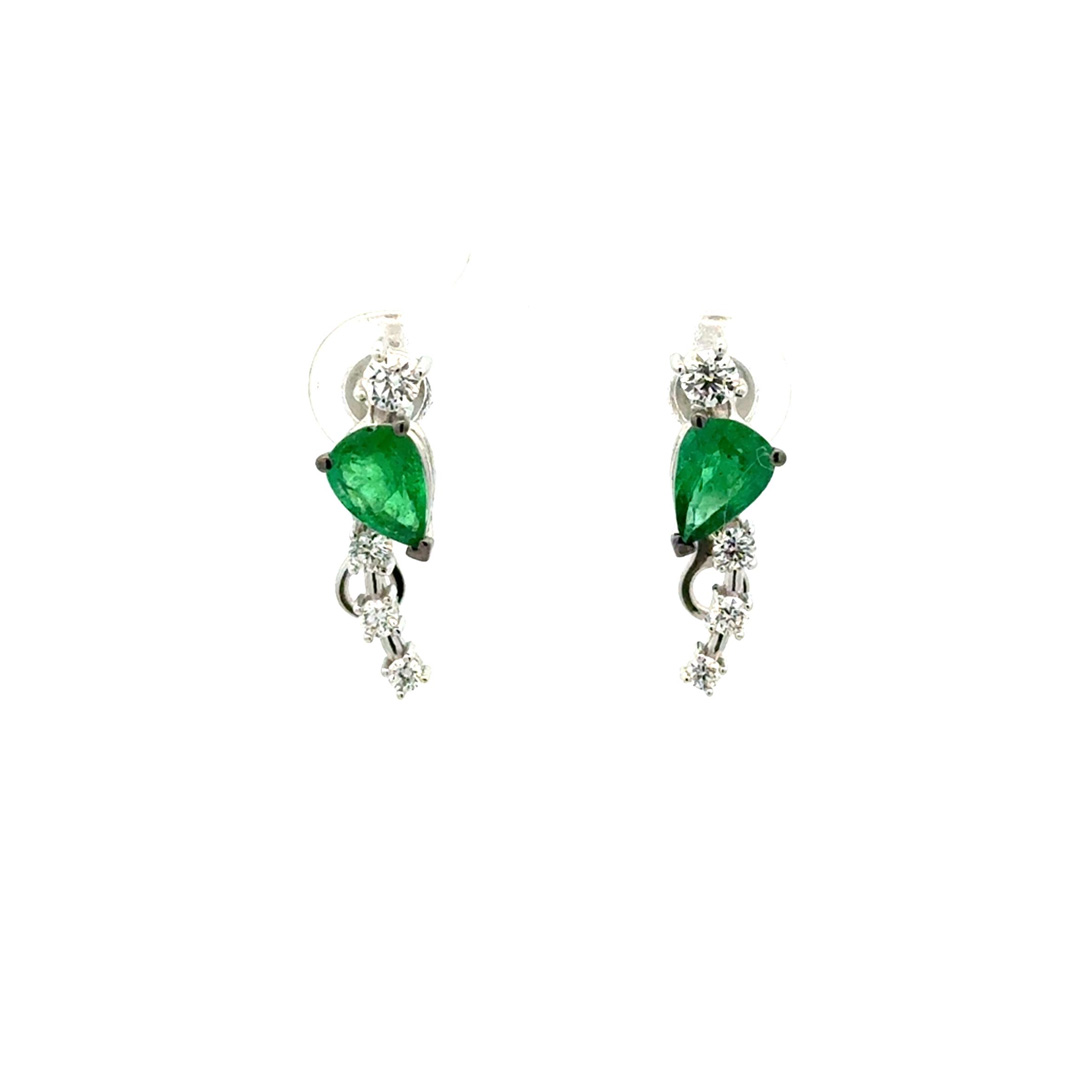 Zarcillo oro blanco 18K peso 3.1g con esmeraldas con un peso total de 1,14Ct y con diamantes con un peso total de 0,40Ct